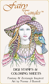Carolyn ~ such an enchanting character, love the pink hair and the fabulous clouds!